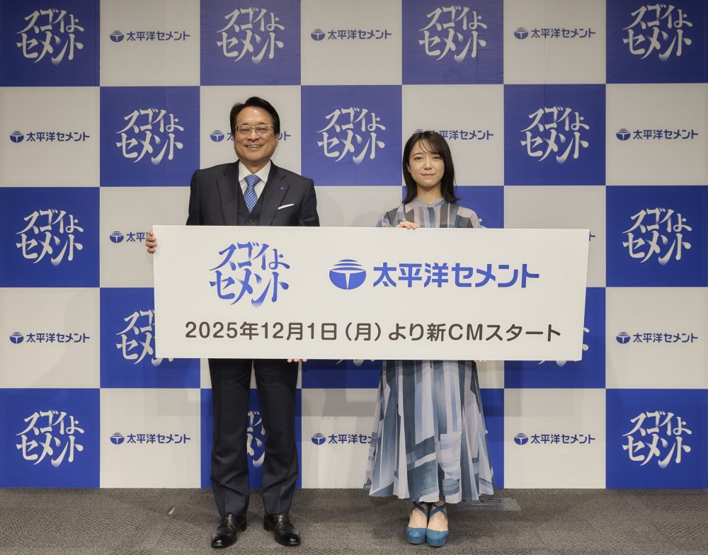 12月1日より放送が開始される「太平洋セメント」の新CM発表会が都内で行われ、CMキャラクターに就任した上白石萌音が、同社田浦良文社長とともに登壇いたしました。