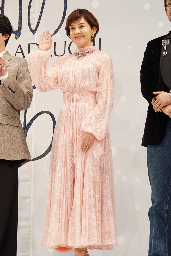 ステージに登壇した沢口は、息子役を演じた長尾謙杜さんについて「こんなに可愛い息子ができました」と茶目っ気たっぷりに紹介。「『親子に見えるね』と言っていただけて、とても喜んでいます。頬が白くてぷくぷくしているところが似ているなと、自分でも思っています」と明かし、会場を温かな笑いで包みました。