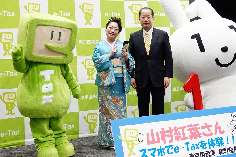 スマートフォンを使った確定申告のPRイベントが東京国税局 麹町税務署にて行われ、山村紅葉が登壇しました。