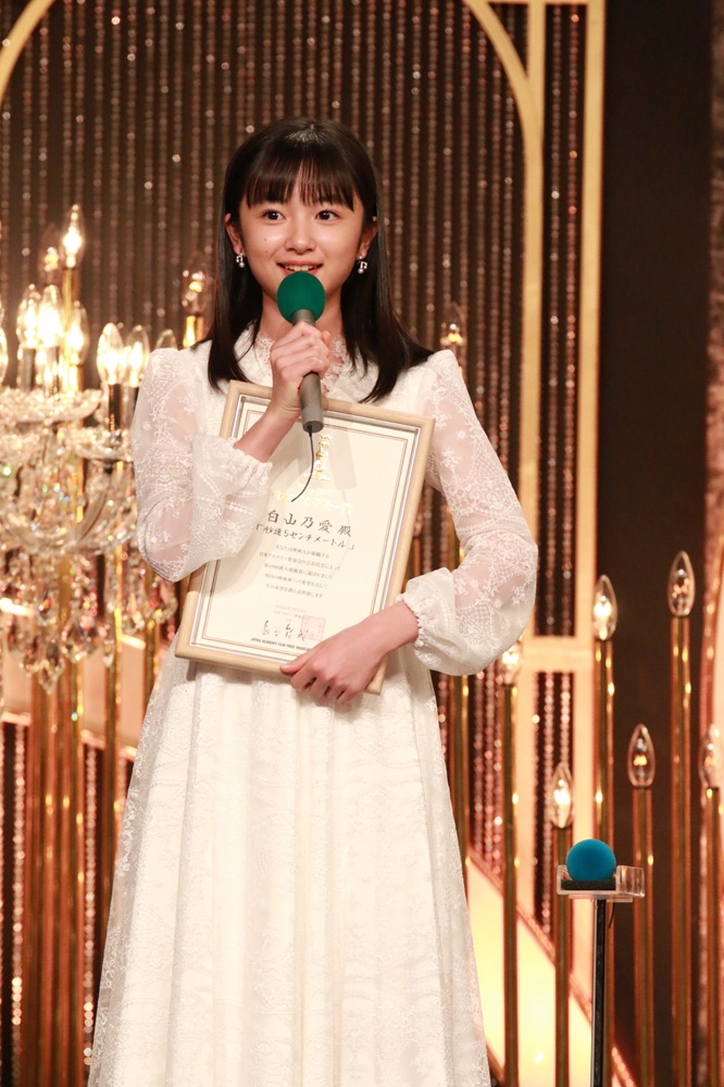ステージに登壇した白山は、緊張した面持ちでマイクを握り、「この度は新人俳優賞という素晴らしい賞をいただき、大変嬉しく光栄に思います。そして明里という役に出会えたことは私にとって大切な経験になりました。奥山由之監督をはじめ、支えてくださった皆様にはとても感謝しています」と笑顔で挨拶。